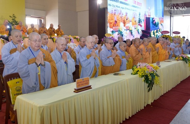 Phát biểu khai mạc, Thượng tọa Thích Nhật Từ đã có lời chúc mừng đến 1.085 học viên các hệ đào tạo thuộc Học viện Phật giáo VN tại TP.HCM được tốt nghiệp năm 2023.