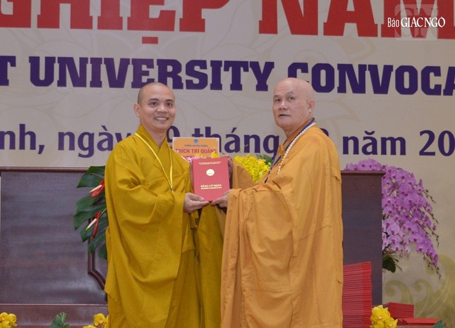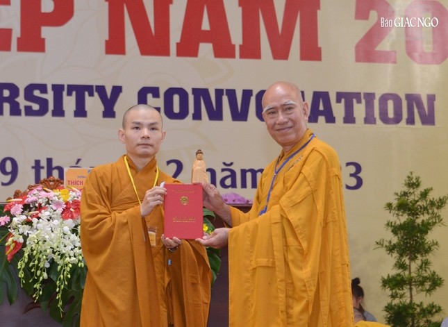 Tại buổi lễ, Thượng tọa Thích Quang Thạnh đã đọc quyết định công nhận tốt nghiệp và cấp phát văn bằng năm 2023. Theo đó, đợt này, có 1 nghiên cứu sinh tốt nghiệp Tiến sĩ Phật học cấp Học viện; 44 học viên tốt nghiệp Thạc sĩ Phật học; 748 học viên tốt nghiệp Cử nhân Phật học; 237 học viên hệ đào tạo từ xa; 19 học viên Cao đẳng liên thông với các Trường Phật học tỉnh Tiền Giang.