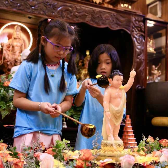 Với các em thơ, Tắm Phật không chỉ là nghi lễ, mà còn là khoảnh khắc gieo duyên lành vào tâm hồn non trẻ, hướng đến điều thiện lành.