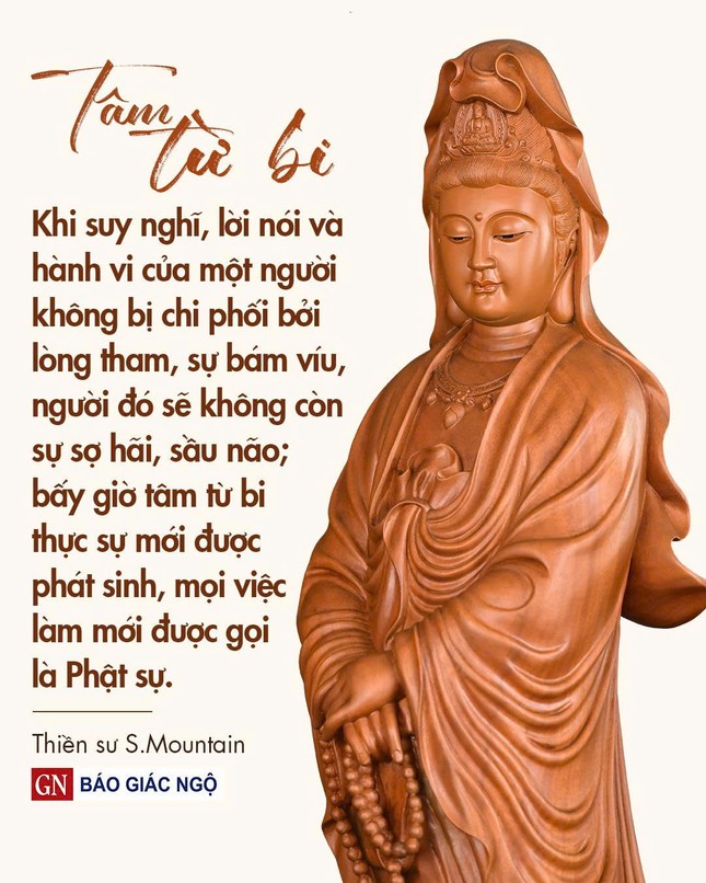 GNO - Bồ-tát Quán Thế Âm là biểu trưng của tình thương, che chở và cứu giúp, gọi là từ bi. Khi trong ta có từ bi, vậy là Bồ-tát đang có mặt trong ta, ta chính là một phần hóa thân của Bồ-tát. Ngài còn biểu trưng cho hạnh lắng nghe. Nghe tiếng đau khổ, lo toan, sợ hãi… của mọi người và mọi loài...