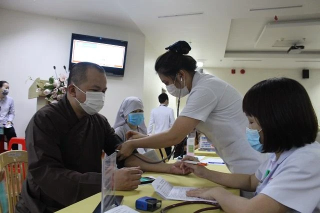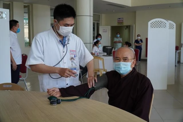 Hiện diện tiêm vắc-xin có chư tôn đức cao niên như Hòa thượng Thích Đức Thanh, Trưởng ban Trị sự tỉnh; Hòa thượng Thích Khế Chơn, Phó Chủ tịch Hội đồng Trị sự, Phó Thường trực Ban Trị sự tỉnh cùng chư Hòa thượng Phó ban.
