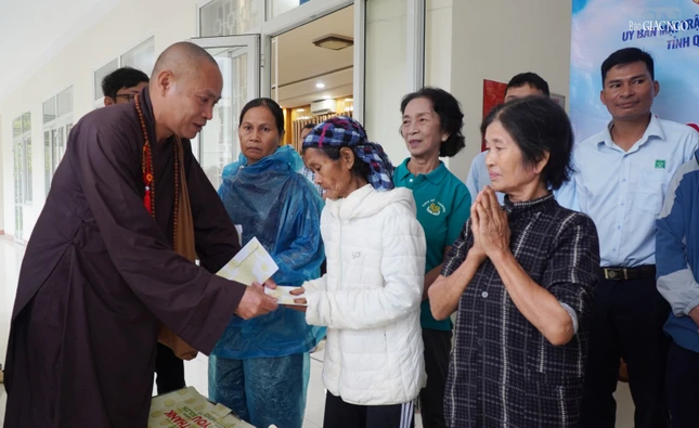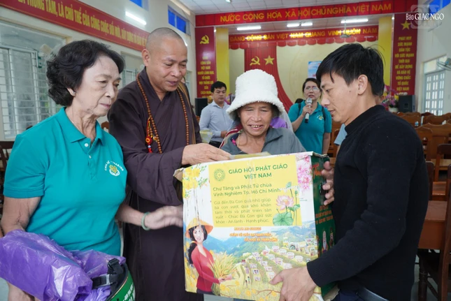 Đại đức Chánh Thư ký Ban Kinh tế - Tài chính T.Ư cho biết thêm, trước đó, đoàn GHPGVN cũng đã trao tặng 7.000 phần quà đến người dân các tỉnh Cao Bằng, Thái Nguyên, Bắc Ninh, Thanh Hóa, Nghệ An, Hà Tĩnh và Quảng Trị bị ảnh hưởng bởi cơn bão số 10 và 11.