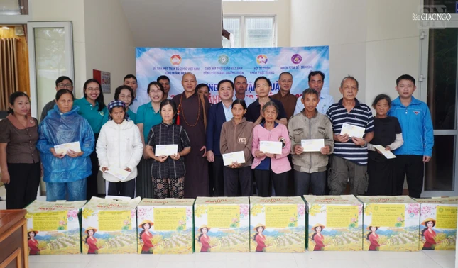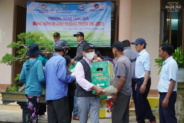 GNO - Ngày 18-11, đoàn GHPGVN đã đến thăm và trao quà người dân tỉnh Quảng Ngãi kết thúc chuyến hành trình trao tặng 2.000 phần quà đến bà con các tỉnh miền Trung bị ảnh hưởng bởi mưa lũ và bão số 13.