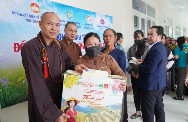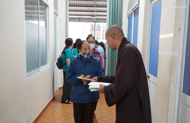 Thượng tọa Thích Trung Sơn tặng quà, thăm hỏi đến người dân |