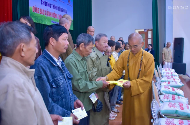 Thượng tọa Thích Tuệ Hải, Phó Trưởng ban Kinh tế - Tài chính T.Ư, Phó ban Từ thiện xã hội T.Ư kiêm Trưởng Phân ban cứu trợ nhân đạo, trụ trì chùa Long Hương (Đồng Nai) đại diện Thượng tọa Thích Thanh Phong làm trưởng đoàn.