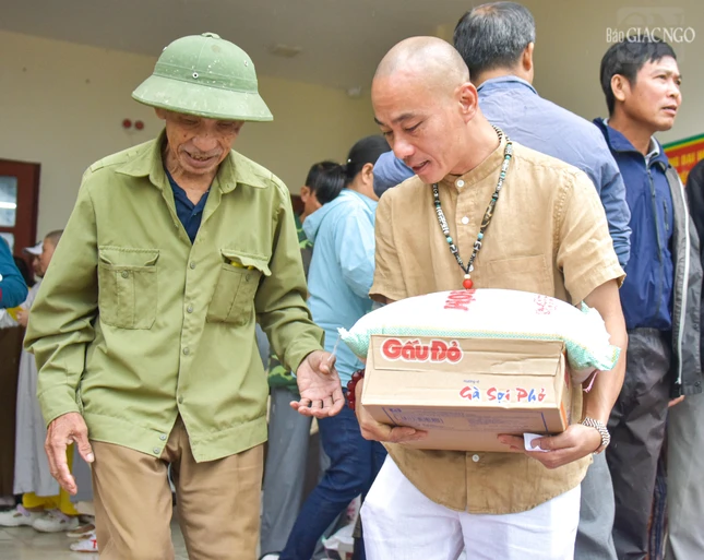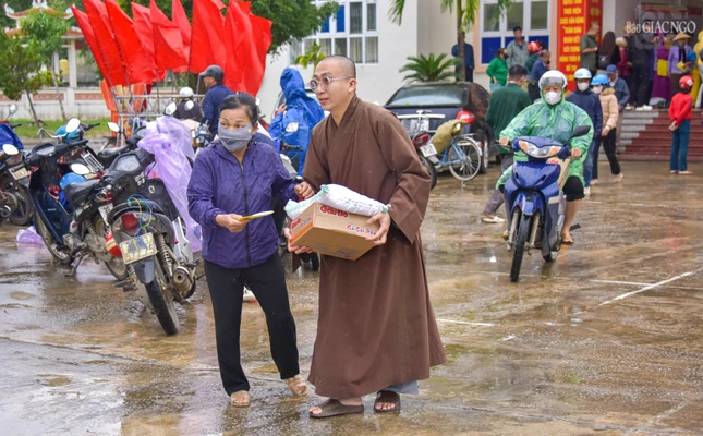 "Hành trình mang yêu thương của Tăng Ni, Phật tử khắp miền đất nước hôm nay dừng chân tại 2 tỉnh Thanh Hóa và Nghệ An, chúng tôi sẽ trao tặng 2.000 phần quà đến người dân chịu thiệt hại do bão lũ nhằm chia sẻ những khó khăn, giúp mọi người sớm quay trở lại cuộc sống bình thường.", Thượng tọa Thích Tuệ Hải chia sẻ.