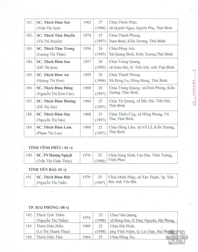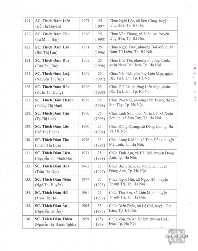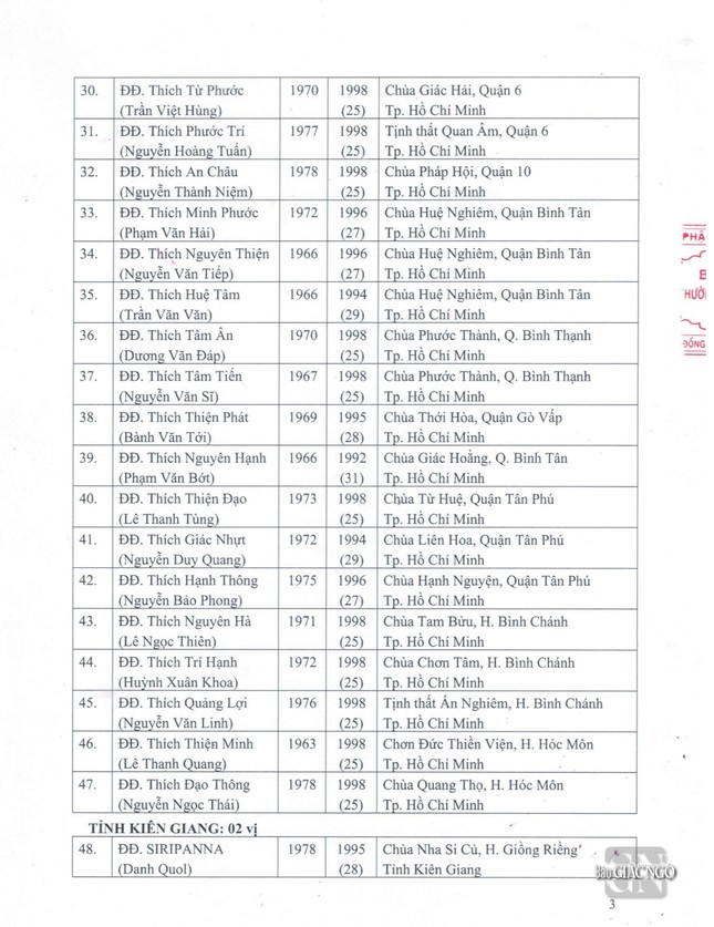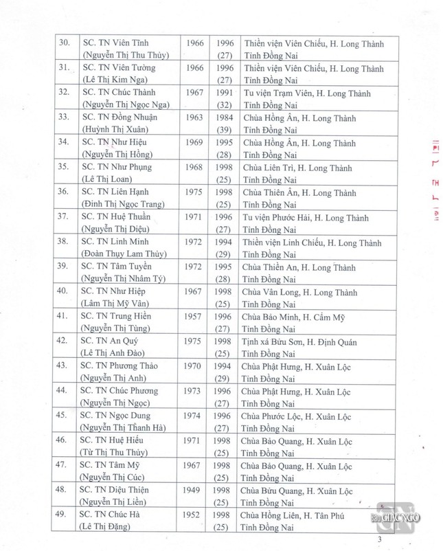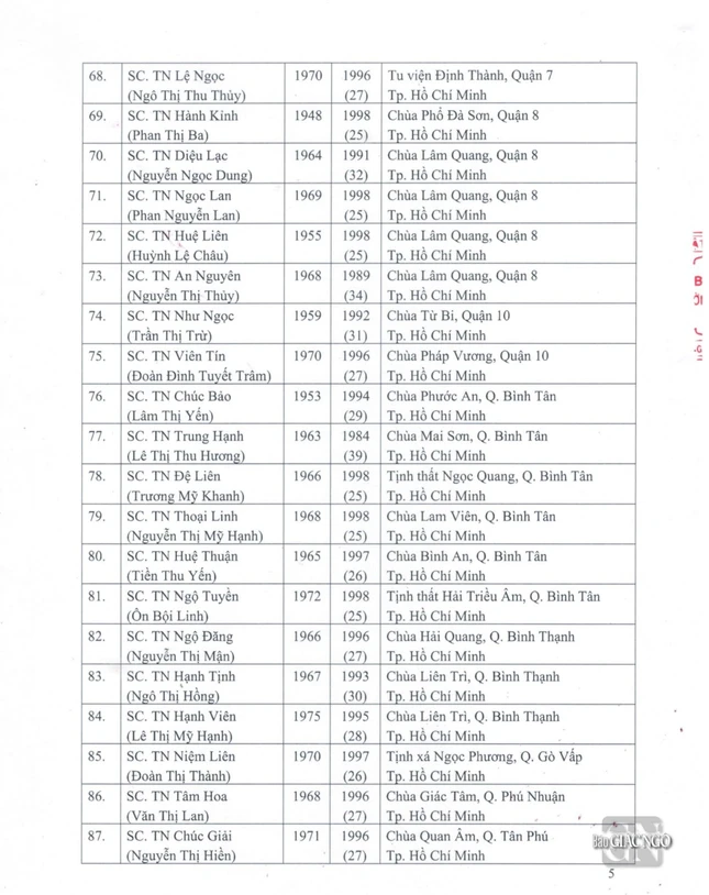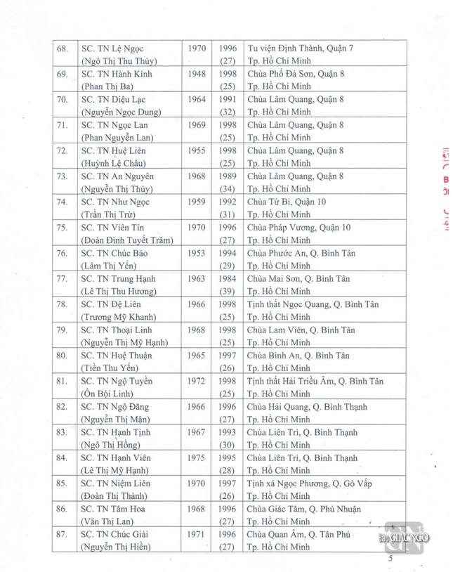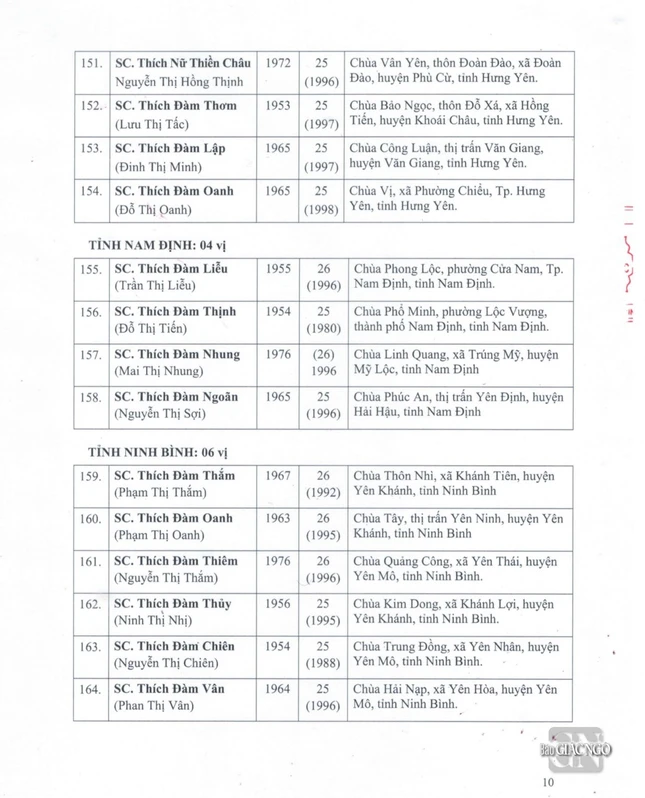 GNO - Thông tin từ Văn phòng Đức Pháp chủ GHPGVN, căn cứ Nghị quyết Hội nghị kỳ III của Ban Thường trực Hội đồng Chứng minh nhiệm kỳ 2022-2027, Đức Pháp chủ đã ban hành Giáo chỉ số 23/GC-HĐCM, ngày 4-4-2024, tấn phong Giáo phẩm cho 317 vị Tăng Ni.