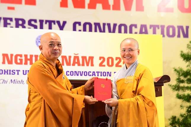 Thay mặt Hội đồng Điều hành Học viện, Thượng tọa Thích Quang Thạnh công bố quyết định tốt nghiệp năm 2024. Theo đó, có 399 Tăng, Ni và cư sĩ đủ điều kiện tốt nghiệp, trong đó: 30 Tăng Ni tốt nghiệp thạc sĩ; 359 Tăng, Ni và cư sĩ tốt nghiệp cử nhân (khoa Pali: 24 vị, Phật học Sanskrit: 5 vị, Triết học Phật giáo: 36 vị, Lịch sử Phật giáo: 23 vị, Hoằng pháp: 70 vị, Phật giáo Việt Nam: 60 vị, Trung văn: 21 vị, Anh văn Phật pháp: 37 vị, Luật học: 19 vị, Phiên dịch Phật giáo Hán truyền: 10 vị, Công tác xã hội: 40 vị, Đào tạo Phật học từ xa: 14 vị) và 10 Tăng, Ni hệ Cao đẳng liên thông.