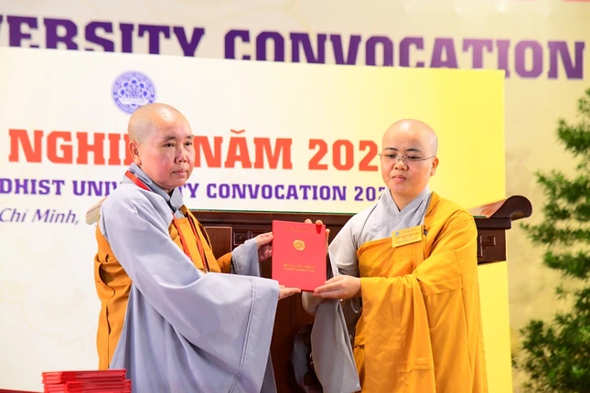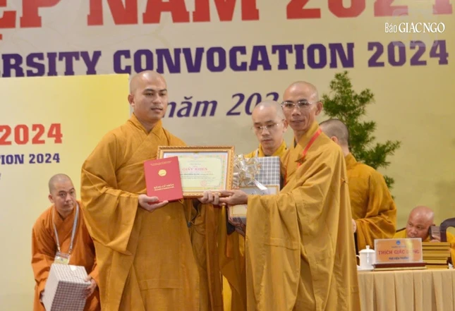 Tại buổi lễ, Đại lão Hòa thượng Viện trưởng đã trao Bằng tốt nghiệp đến thủ khoa thạc sĩ Phật học, thủ khoa cử nhân 11 khoa; trao phần thưởng đến thủ khoa kỳ tuyển sinh thạc sĩ khóa VII và thủ khoa kỳ tuyển sinh cử nhân khóa XIX. Chư tôn đức Phó Viện trưởng cũng lần lượt trao Bằng tốt nghiệp đến các học viên thạc sĩ, cử nhân và Cao đẳng liên thông.