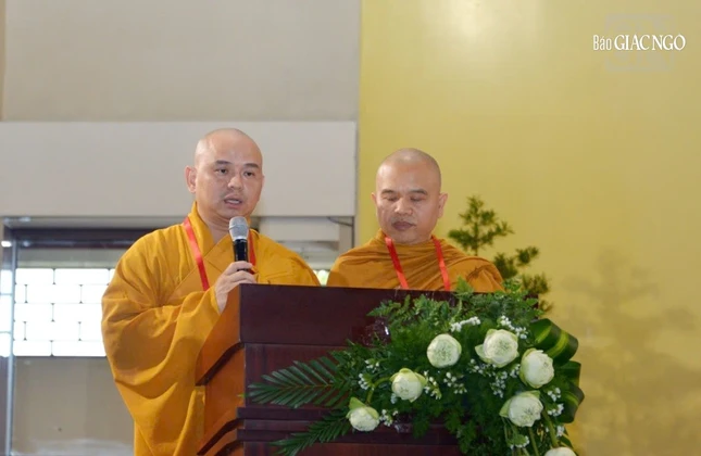 Thượng tọa Thích Quang Thạnh công bố quyết định tốt nghiệp của Hội đồng Điều hành Học viện |