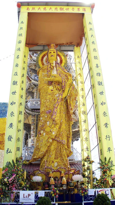 Tượng Phật Quan Thế âm Bồ Tát làm bằng hoa