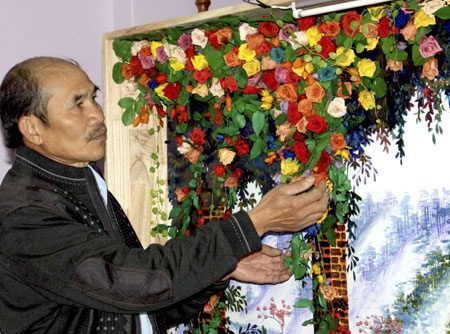 Nghệ nhân Nguyễn Công Hóa bên bức tranh hoa hồng ướp lớn nhất Việt Nam