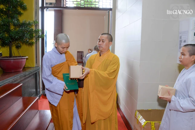 Dịp này, Đại lão Hòa thượng Viện trưởng cũng tặng các Tăng, Ni sinh mỗi người một pho tượng Phật và Bồ-tát bằng gỗ, biểu tượng tâm linh trên con đường học Phật, với ý nghĩa thực hành theo phương châm lấy "Trí tuệ là sự nghiệp".