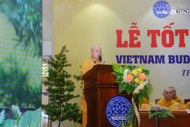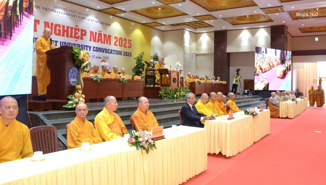 Thay mặt Hội đồng Điều hành Học viện, Thượng tọa Thích Giác Hoàng, Phó Tổng Thư ký Hội đồng Điều hành Học viện Phật giáo VN tại TP.HCM công bố quyết định tốt nghiệp năm 2025.