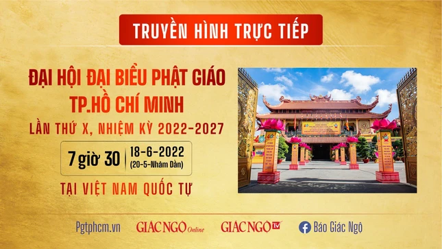 GNO - Ngày mai 18-6, truyền hình trực tiếp Đại hội đại biểu Phật giáo TP.HCM lần thứ X, kỷ niệm 40 năm thành lập, từ 7g30 tại Việt Nam Quốc Tự trên Cổng thông tin điện tử của Phật giáo TP.HCM và các nền tảng số của Báo Giác Ngộ.