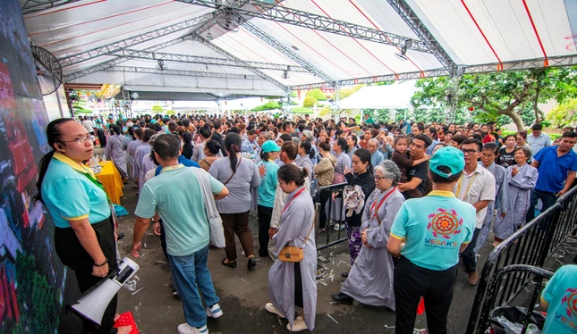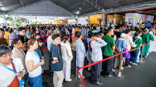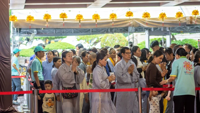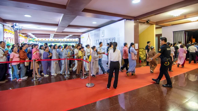 Lễ chiêm bái dành cho tất cả mọi người (đăng ký trực tuyến bằng cách quét QR code, hotline của Ban Tổ chức và trực tiếp tại Việt Nam Quốc Tự) sẽ tiếp tục cho đến 20 giờ tối mai, 10-5-2025.