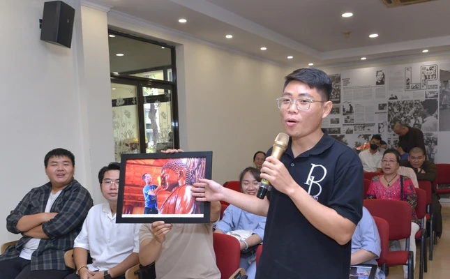 Nhà báo Nguyễn Công Thành, nguyên Trưởng phòng ảnh Báo Tuổi Trẻ tham dự và chia sẻ tại buổi họp mặt |
