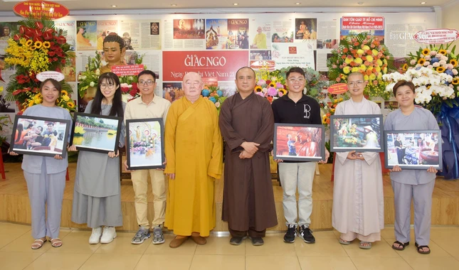 Tại buổi họp mặt này, Câu lạc bộ Phóng viên - Cộng tác viên Báo Giác Ngộ trao giải cho các tác giả đoạt giải cuộc thi ảnh online với chủ đề “Con về với Phật” trong mùa Phật đản Phật lịch 2567 vừa rồi.