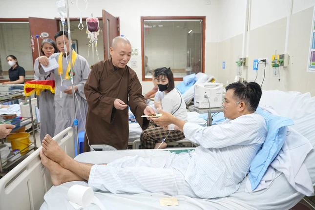 Trong không khí lắng đọng, Hòa thượng đã thành tâm cầu nguyện Tam bảo gia hộ cho tập thể y bác sĩ luôn giữ được sự từ bi và tận tâm với nghề, cầu mong các bệnh nhân và gia đình luôn được an lành, có thêm nghị lực, sớm vượt thoát bệnh duyên để đoàn tụ trong niềm vui khỏe mạnh.