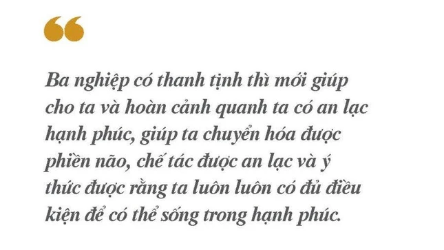 Chính cây chánh niệm mới giúp ta sống minh mẫn qua các hoạt động của thân, khẩu và ý. Đó là nội dung ba nghiệp thanh tịnh, giá trị quý báu của con người. Ba nghiệp có thanh tịnh thì mới giúp cho ta và hoàn cảnh quanh ta có an lạc hạnh phúc, giúp ta chuyển hóa được phiền não, chế tác được an lạc và ý thức được rằng ta luôn luôn có đủ điều kiện để có thể sống trong hạnh phúc. Những điều kiện ấy luôn có sẵn trong ta và chung quanh ta. Nhờ vậy ta có thể an trú một cách hạnh phúc ngay bây giờ và ở đây mà không cần phải tìm cầu ở bất cứ một nơi nào hay bất cứ một thời điểm nào khác nữa.