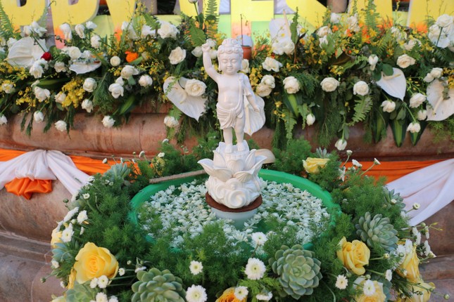 Nghi thức truyền thống cúng Phật được tụng niệm bởi chư vị Tăng Ni đến từ Việt Nam và Myanmar, điều này góp thêm sự phong phú, đa dạng về văn hóa cho buổi lễ. Sau đó, chư Tăng Ni, đại biểu tham dự đã thành kính cử hành nghi thức Tắm Phật.