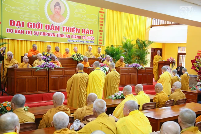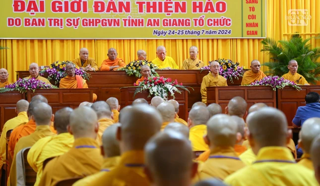 GNO - Sáng 25-7, tại chùa Bình An (TP.Long Xuyên), Ban Thường trực Ban Trị sự GHPGVN tỉnh An Giang tổ chức Lễ bế mạc Đại giới đàn Thiện Hào sau 2 ngày diễn ra đã thành tựu viên mãn.