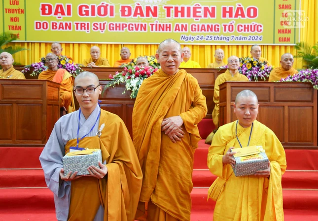 Dịp này, Ban Kiến đàn trao tặng những phần thưởng đến các giới tử Tỳ-kheo, Tỳ-kheo-ni, Thức-xoa, Sa-di và Sa-di-ni xuất sắc vượt qua kỳ thi khảo hạch đạt kết quả cao.