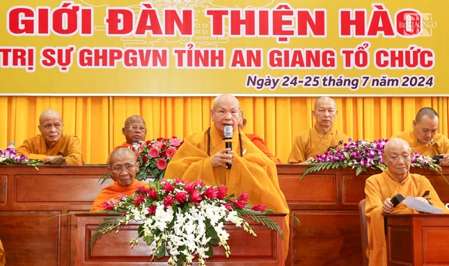 Đạo từ tại lễ khai mạc, Trưởng lão Hòa thượng Thích Thiện Nhơn tán thán Ban Trị sự GHPGVN tỉnh An Giang, Ban Kiến đàn Đại giới đàn Thiện Hào đã tạo thuận duyên cho giới tử Tăng, Ni đủ điều kiện thọ nhận giới pháp để tu học. Trưởng lão Hòa thượng cũng chia sẻ về công hạnh của Hòa thượng Thích Thiện Hào, tôn hiệu của Đại giới đàn do Ban Trị sự GHPGVN tỉnh An Giang tổ chức năm nay. Qua đó, ngài nhắn nhủ các giới tử noi gương đạo hạnh của các bậc kỳ túc, tinh tấn tu học để làm lợi ích cho Đạo pháp, góp phần vào sự phát triển của Giáo hội.