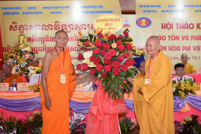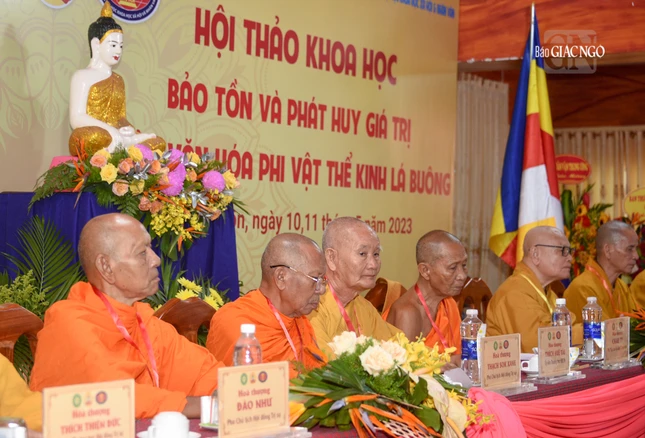 Ban đạo từ chứng minh, Trưởng lão Hòa thượng Chau Ty bày tỏ kỳ vọng, hội thảo sẽ làm rõ thêm giá trị, giải pháp bảo tồn và phát huy kinh lá buông. Trong đó, chú trọng đến lịch sử hình thành, cách thức chế tác và nghệ thuật khắc chữ; chú trọng đến nội dung phong phú trong kinh lá.