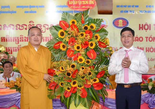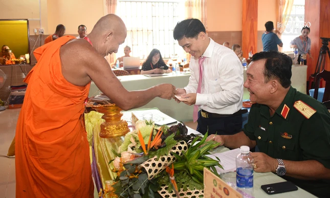 Tiếp đó, Thượng tọa Thích Phước Nguyên, Phó Tổng Thư ký, Chánh Văn phòng II TƯ tuyên đọc quyết định tặng Bằng Tuyên dương công đức của Hội đồng Trị sự GHPGVN đến 6 cá nhân đã có nhiều đóng góp tích cực trong công tác tổ chức Hội thảo "Bảo tồn và phát huy giá trị văn hóa phi vật thể kinh lá buông" và Hội nghị đánh giá 19 năm thực hiện công tác hỗ trợ Phật giáo Nam tông Khmer.
