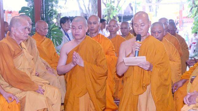 Thay mặt Hội đồng Chứng minh GHPGVN, Trưởng lão Thích Huệ Tài đã tuyên đọc điếu văn tri ân những công đức to lớn của cố Trưởng lão Hòa thượng Giác Dũng, người đã cống hiến cả cuộc đời cho sự phát triển của Phật giáo tỉnh nhà nói chung và Phật giáo Khất sĩ nói riêng.