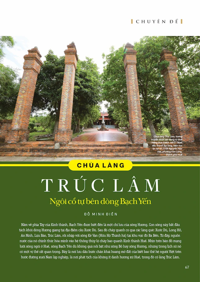 Sông Bạch Yến là một trong số những chi lưu tách ra từ thượng nguồn sông Hương, chảy qua các ngôi làng cổ như Trúc Lâm, Lựu Bảo, An Hòa thượng, An Ninh thượng,… Tại đây còn hiện diện những ngôi chùa với tuổi đời xấp xỉ 300 năm, từng được xếp vào hàng quan tự đặc biệt, giữ vai trò trọng yếu của Phật giáo Thuận Hóa - Phú Xuân một thời.