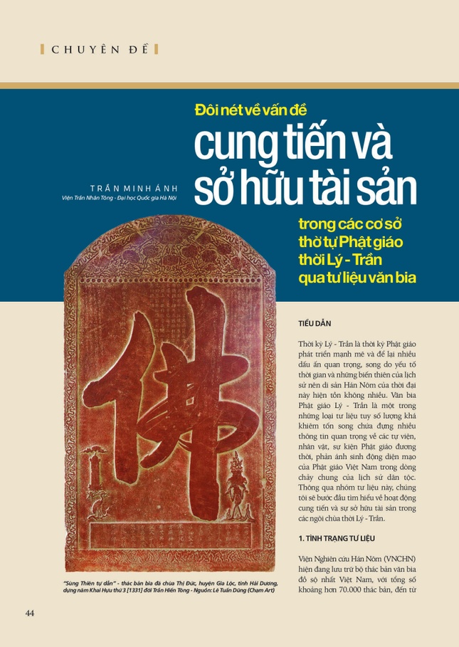 “Văn bia Phật giáo thời Lý - Trần” - giới thiệu đến quý độc giả mảng tư liệu hết sức quý, với hệ thống văn bia có tuổi đời trên dưới 1.000 năm, chuyển tải nhiều nội dung sinh động liên quan đến nếp sống thiền môn và sinh hoạt Phật giáo thời Lý - Trần, một giai đoạn vàng son của lịch sử Phật giáo Việt Nam và lịch sử dân tộc".