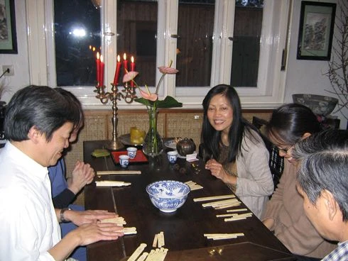 Thật tình, nếu muốn „kêu gọi“ các anh em bà con thì cũng có thể bày biện tổ chức kiểu hội hè đình đám ăn Tết như ở các khách sạn nơi nơi đang rộ quảng cáo. Có tiền mua tiên cũng được huống hồ là sắm Tết. Ấy thế mà không dễ! Dịp thường thì may ra, dịp Tết thì kẹt. Năm hết tết tới ai cũng lo mua mua sắm sắm, chẳngcó ai rảnh rỗi. Người nào cũng búi việc cho gia đình. Có lòng nghe tôi về thì cũng tạt qua vài giờ, ai cũng hẹn chị: „sau Tết nghe!“. Thật xa vời cái chữ „sau“ ấy!