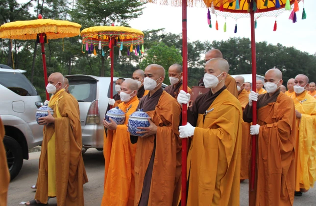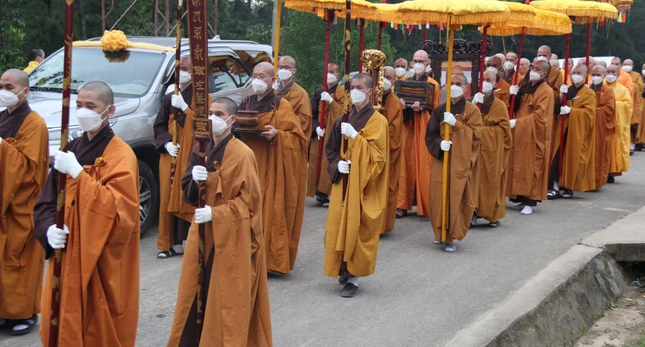 GNO - Rạng sáng 30-1, sau khi trà-tỳ nhục Thiền sư Thích Nhất Hạnh gần 20 giờ, môn đồ pháp quyến đã thu xá-lợi, phân bố thành 6 phần, cung thỉnh trở về an vị tại thiền đường Trăng Rằm - Tổ đình Từ Hiếu, cố đô Huế.