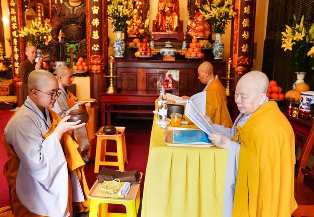 Buổi tối, đại diện Hội đồng Giới sư đã tuyên lại toàn bộ giới bản gồm 250 điều cho Tỳ-kheo và 348 điều cho Tỳ-kheo-ni.