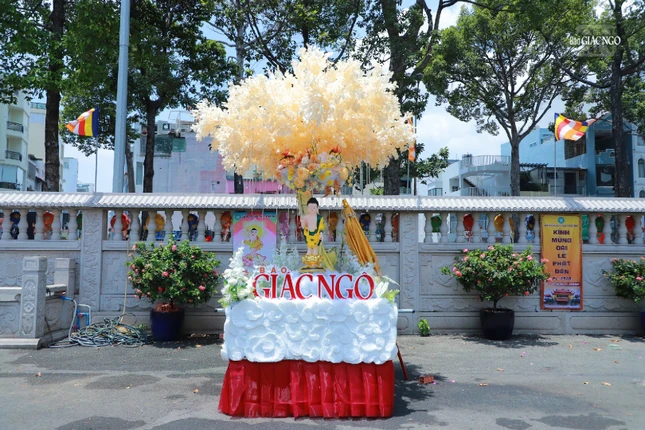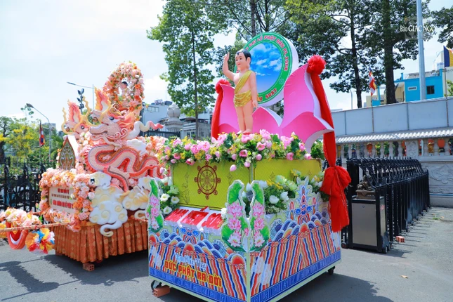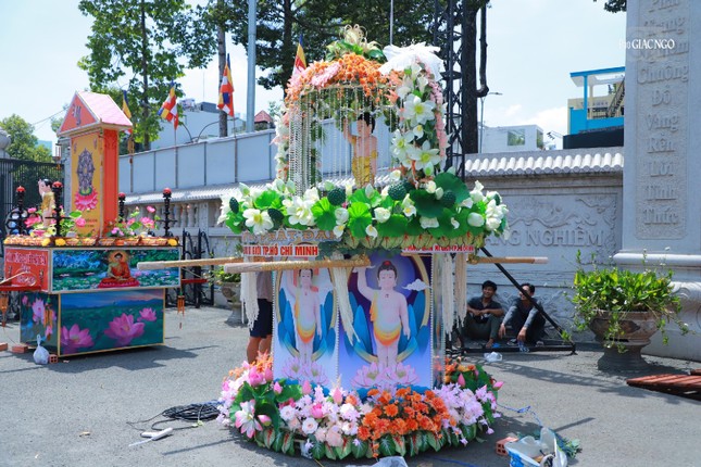 Đúng 20 giờ, đoàn cung rước kiệu hoa Thái tử Tất Đạt Đa đản sinh sẽ khởi hành từ tổ đình Ấn Quang đến lễ đài chính - Việt Nam Quốc Tự theo lộ trình lễ rước Phật: Tập trung tại đường Sư Vạn Hạnh (tổ đình Ấn Quang) - Ngô Gia Tự - Lê Hồng Phong - đường 3/2 (cổng chính Việt Nam Quốc Tự). Sau khi đoàn đến Việt Nam Quốc Tự sẽ cử hành nghi thức Tắm Phật truyền thống.