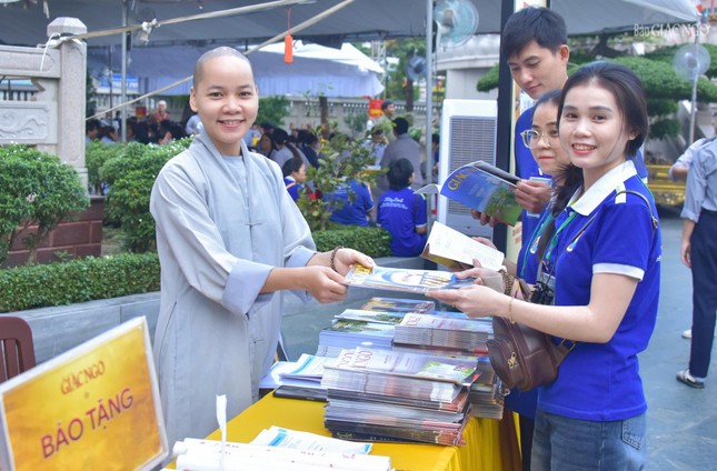 Hình ảnh Báo Giác Ngộ tặng báo tại Hội thi giáo lý Phật tử cấp Thành phố tại Việt Nam Quốc Tự:
