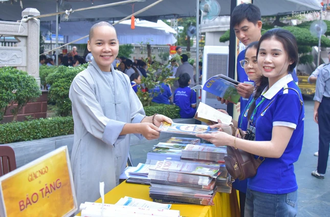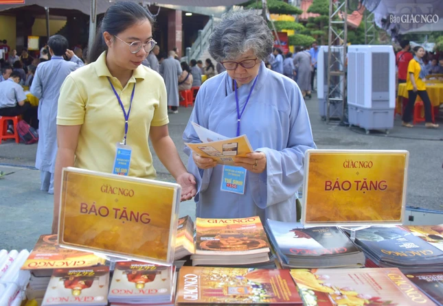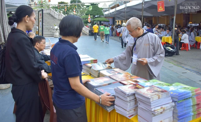 GNO - Sáng nay, 22-12, nhân Hội thi giáo lý Phật tử cấp Thành phố diễn ra tại Việt Nam Quốc Tự với trên 4.400 Phật tử TP.HCM tham gia, Phòng Phát hành Báo Giác Ngộ đã tổ chức trao tặng 3.000 tờ tuần báo đến Phật tử tham gia hội thi.