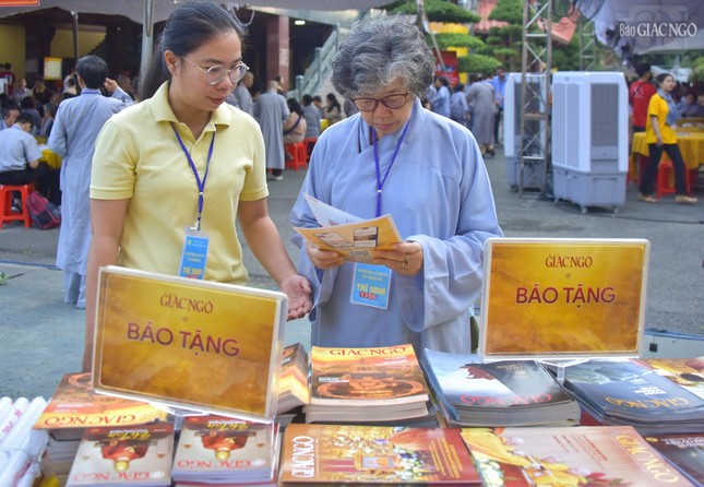 Theo đó, được sự cho phép của Hòa thượng Trưởng ban Trị sự GHPGVN TP.HCM, Ban Tổ chức Hội thi giáo lý Phật tử cấp Thành phố, sáng nay, Phòng phát hành Báo Giác Ngộ đã trao tặng hơn 3.000 tờ báo gồm các ấn phẩm tuần san, nguyệt san đến Phật tử tham dự hội thi tại Việt Nam Quốc Tự.