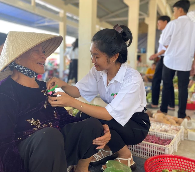 Mùa Vu lan - Báo hiếu Phật lịch 2567, các em Phật tử chùa Phật giáo Khánh Sơn cùng giỏ hoa hồng trên tay đã xuống phố cùng lan tỏa niềm vui mùa hiếu hạnh đến người đi đường, những cô bán hàng... Cả người cài hoa và người nhận hoa cài trên áo đều hoan hỷ đón nhận, cùng chúc lành mùa Vu lan kết nối lan tỏa giá trị sống tốt lành.