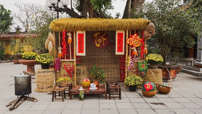 Bên cạnh đó, nhiều chùa còn tạo những tiểu cảnh tái hiện cảnh Tết xưa, với những hoa đào và bánh chưng… để Phật tử đến lễ chùa lễ Phật, tham quan, chụp ảnh...