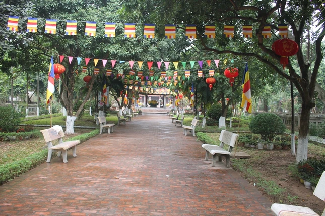 Đến các ngôi chùa trong những ngày này sẽ được chiêm ngưỡng những sắc màu tươi mới, từ những dải cờ Phật giáo treo giăng khắp nơi, những tấm biển "Mừng Xuân Di Lặc" trên cổng chùa, đến những cây nêu treo cành phướn... Đặc biệt, hoa nở khoe sắc thắm trong sân chùa, vườn chùa, trước bàn thờ Tam bảo.