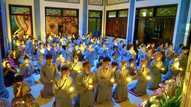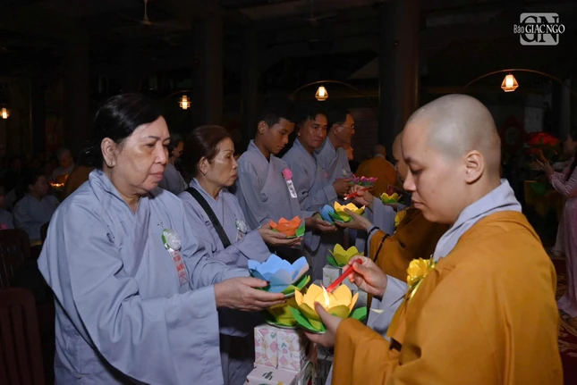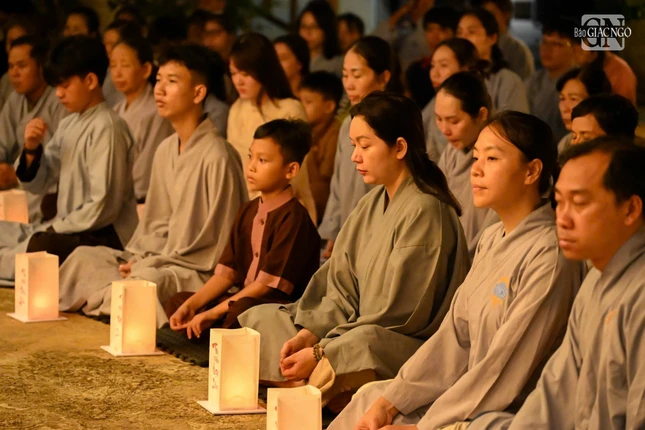 Trong không khí thiêng liêng, đại chúng đã lắng đọng tâm tư, tụng kinh Vu lan, thắp sáng những ngọn nến nguyện cầu cho cha mẹ hiện tiền được an lạc, cha mẹ nhiều đời nhiều kiếp quá vãng được siêu sanh Tịnh độ.