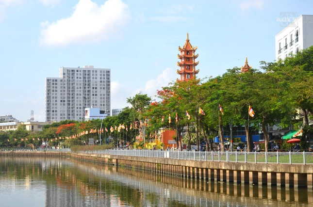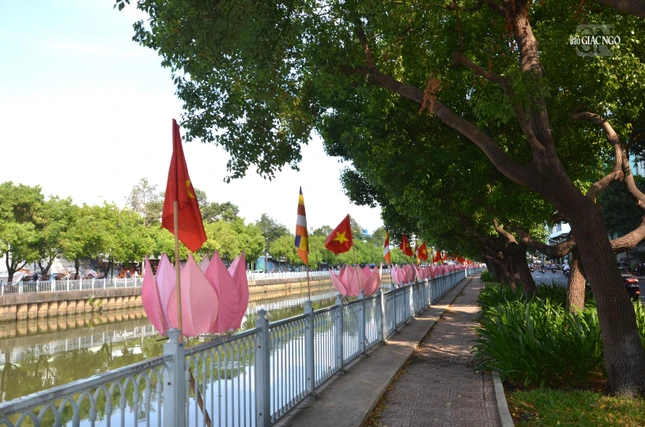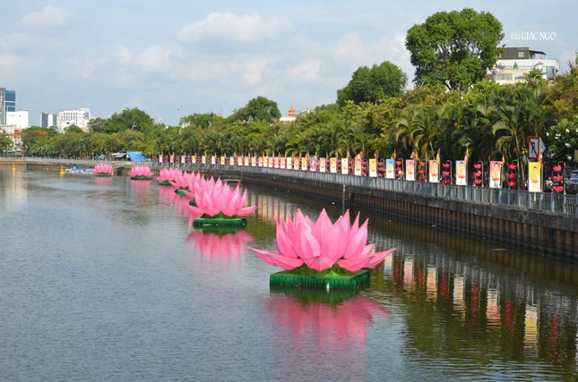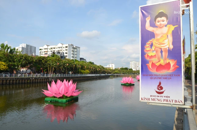 * 7 đóa sen hồng trên dòng kênh Nhiêu Lộc là điểm nhấn trong Đại lễ Phật đản Phật lịch 2568. Bên cạnh đó, những áp phích, cờ, lồng đèn được treo dọc 2 bên kênh Nhiêu Lộc và trên các nẻo đường tạo nên không khí hân hoan, đón mừng mùa Phật đản đang về: