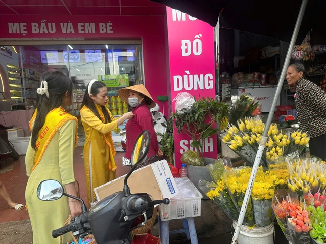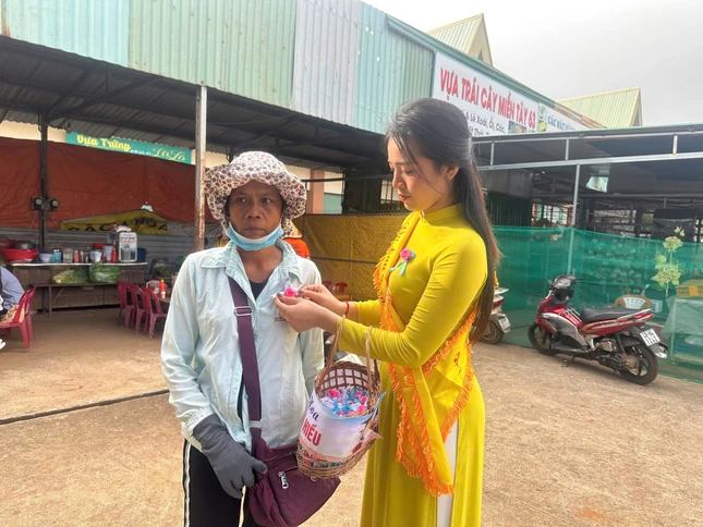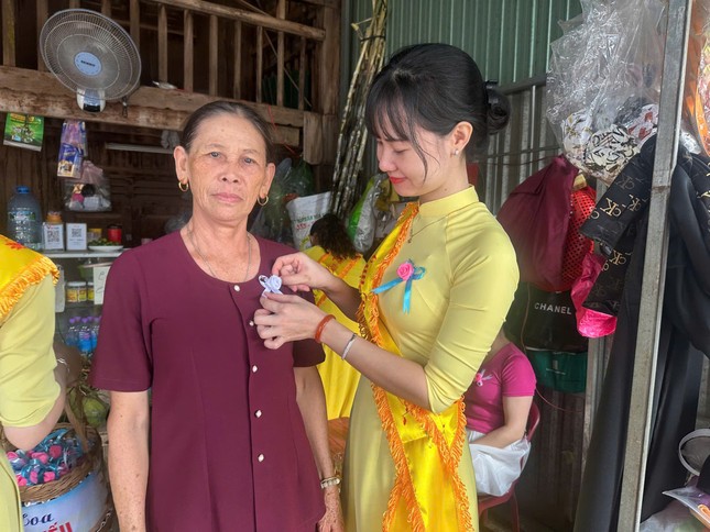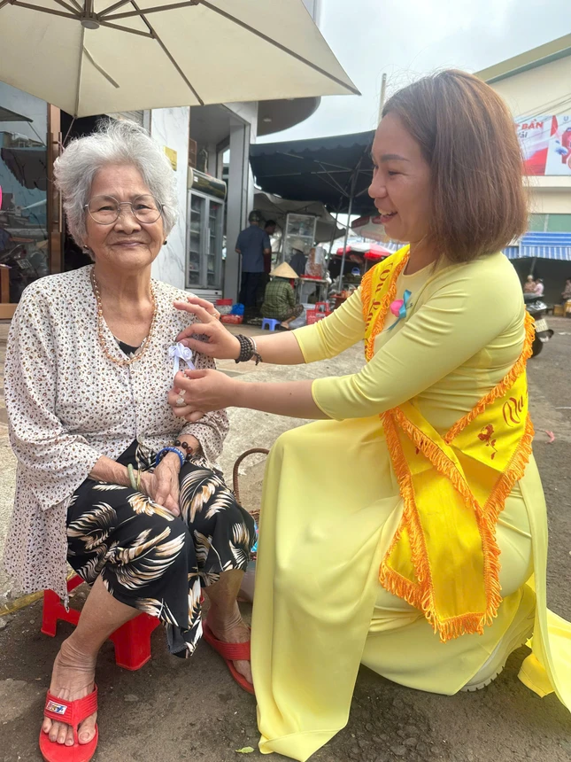 Những bông hoa hồng được cài lên áo các chị, các mẹ đang làm việc, lao động tại chợ Gia Nghĩa nhân mùa Vu lan - Báo hiếu như gởi trọn tấm lòng thơm thảo, hiếu kính.