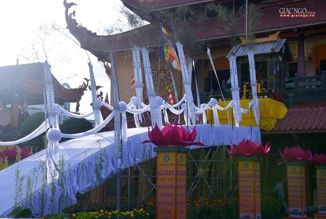 Sau đây, Giác Ngộ Online giới thiệu đến quý bạn đọc những hình ảnh thiết trí đàn tràng trang nghiêm tại Việt Nam Quốc Tự, do PV Báo Giác Ngộ thực hiện.