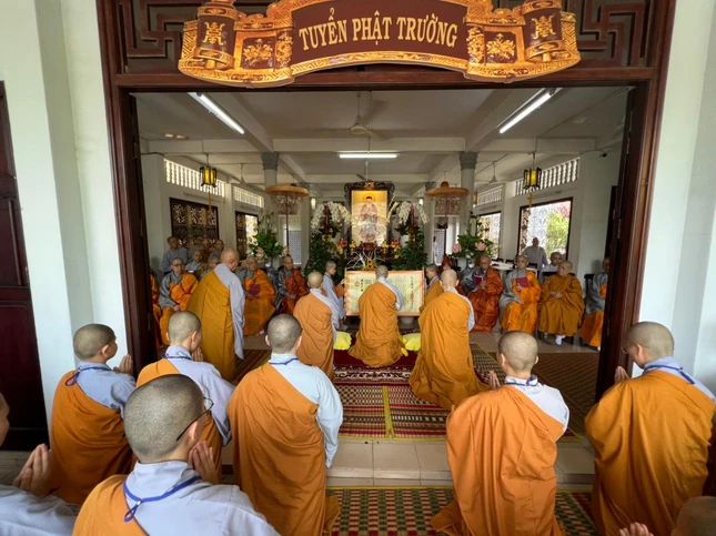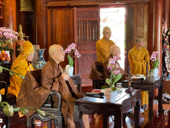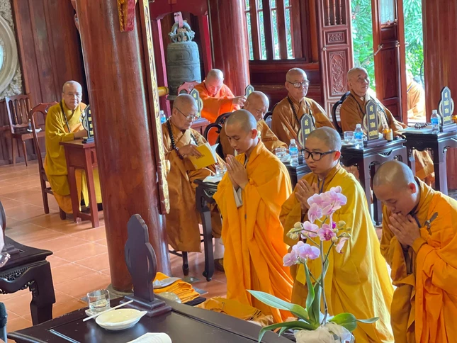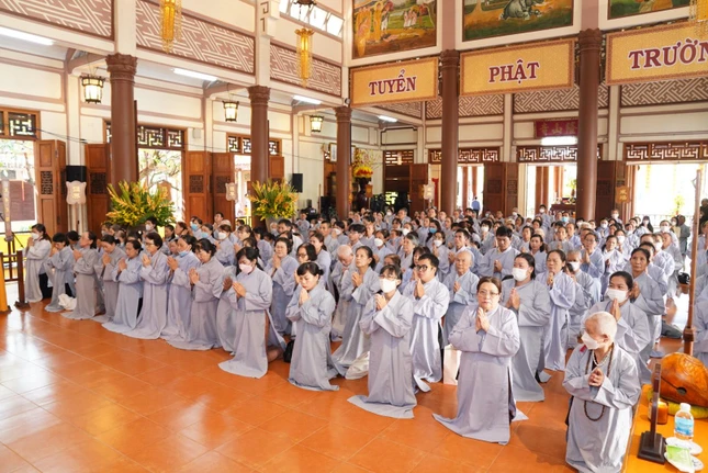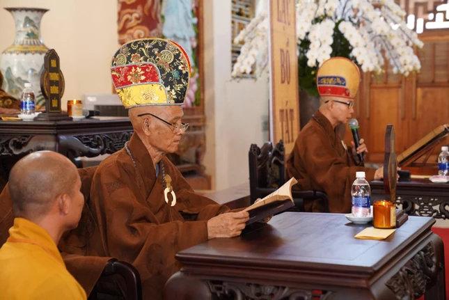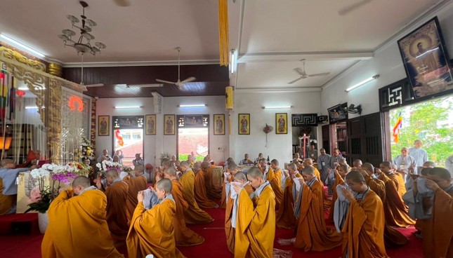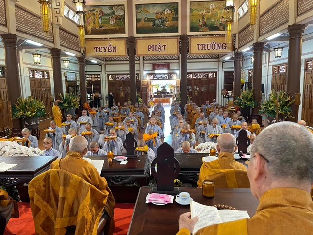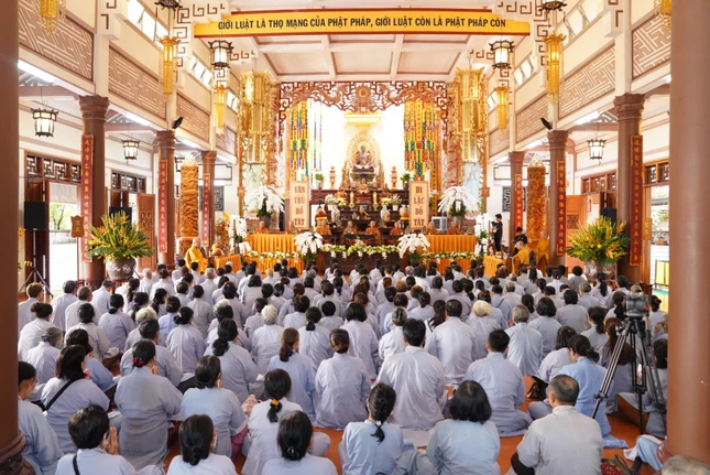 Theo đó, chư giới sư Đại Giới đàn Trí Nghiêm Phật lịch 2566 đã tấn đàn truyền giới đến giới tử xuất gia và giới tử tại gia tại hai giới trường chùa Long Sơn và Ni viện Diệu Quang.