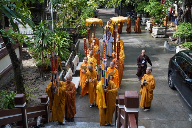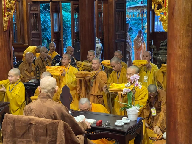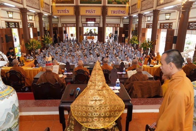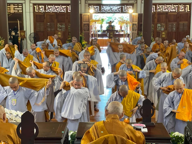 GNO - Sau lễ khai mạc vào sáng 5-10 (10-9-Nhâm Dần), Hội đồng Thập sư nhị bộ Tăng, Ni đã tấn đàn truyền giới cho giới tử tại hai giới trường chùa Long Sơn và Ni viện Diệu Quang.