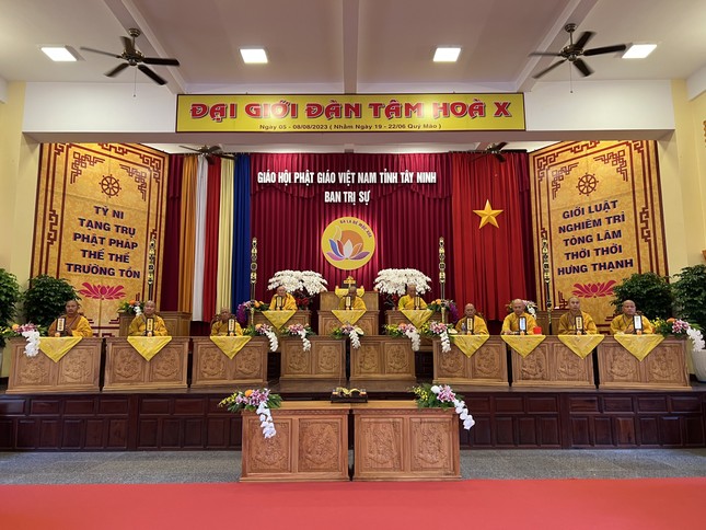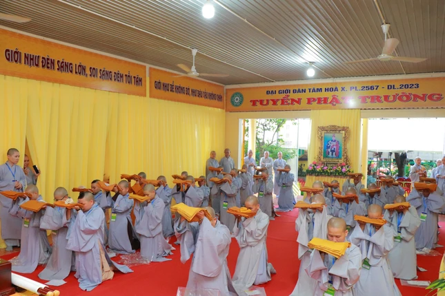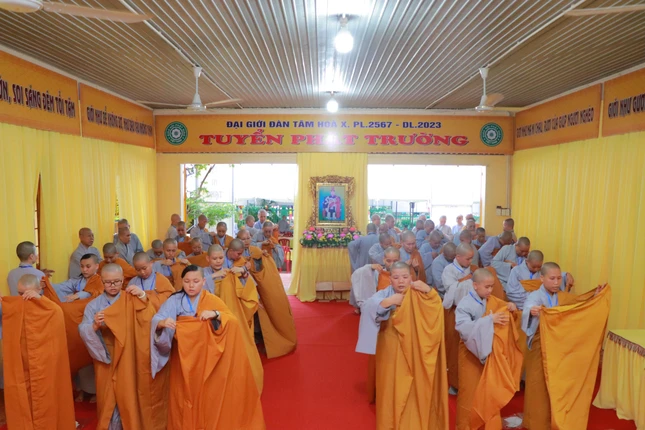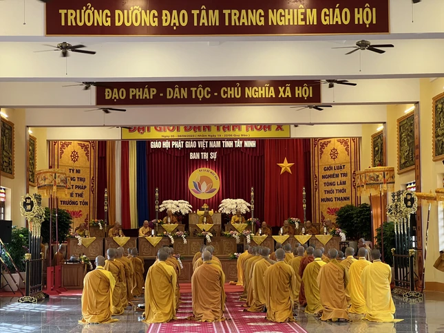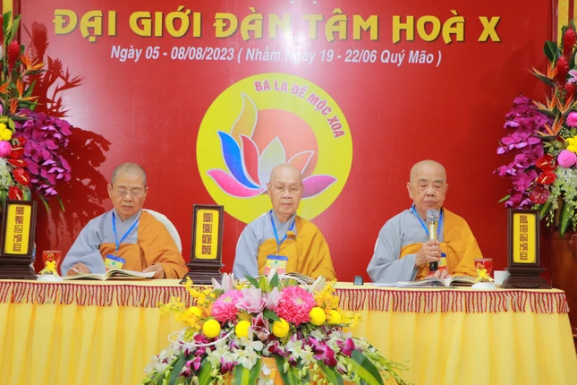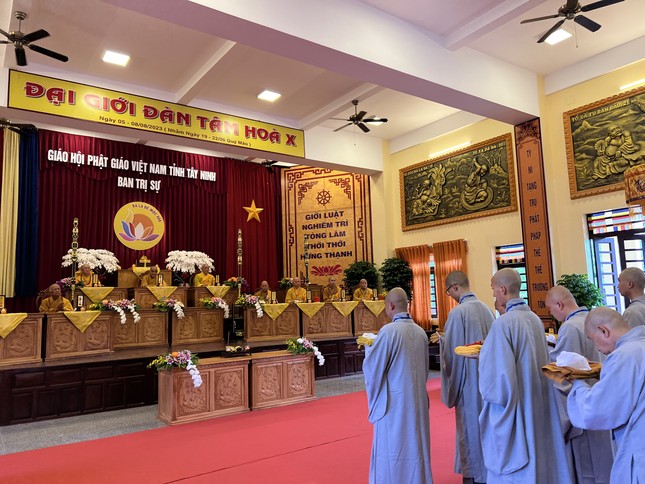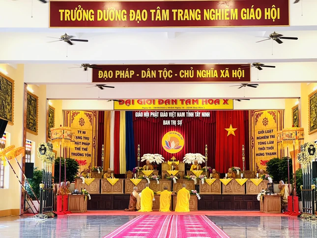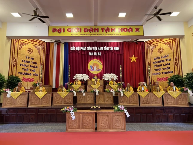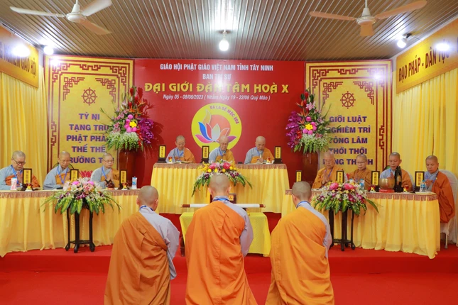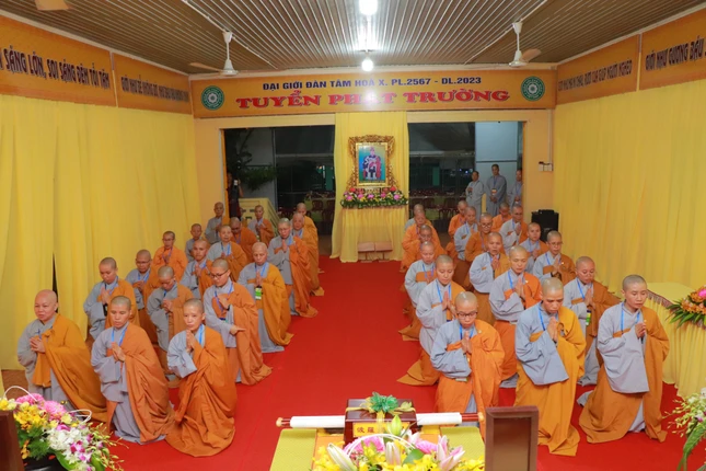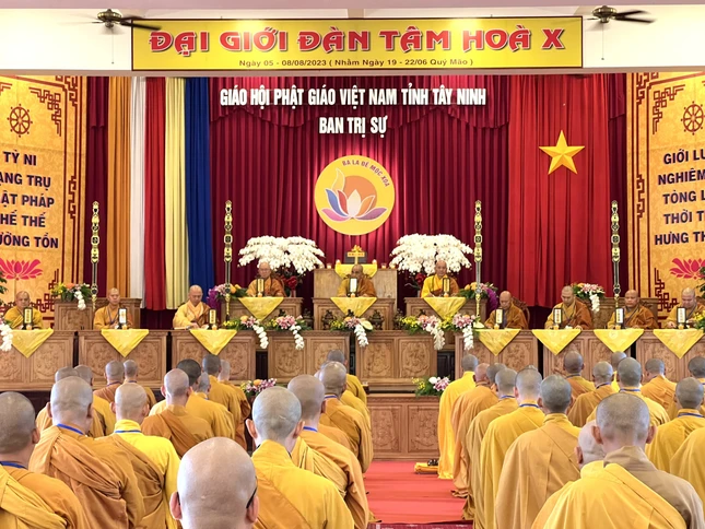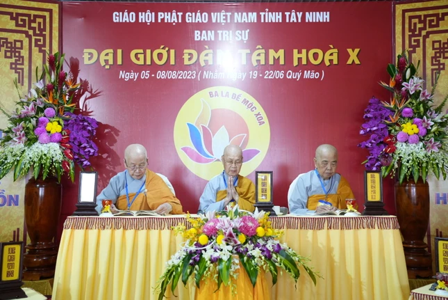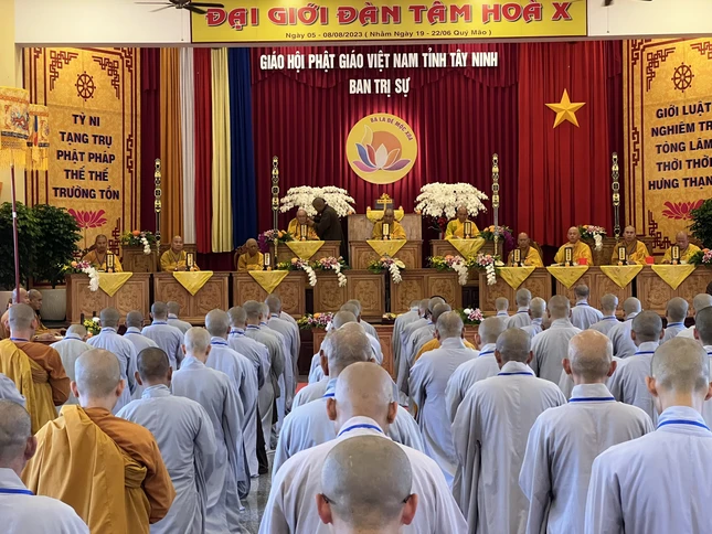 GNO - Ngày 6, 7-8 (20, 21-6-Quý Mão) tại hai giới trường Tăng và Ni, Hội đồng thập sư Tăng và Ni đã tấn đàn truyền giới pháp cho giới tử Đại giới đàn Tâm Hòa X, do Ban Trị sự GHPGVN tỉnh Tây Ninh tổ chức từ ngày 5-8 đến 8-8-2023 (19 đến 22-6-Quý Mão) tại hai giới trường.